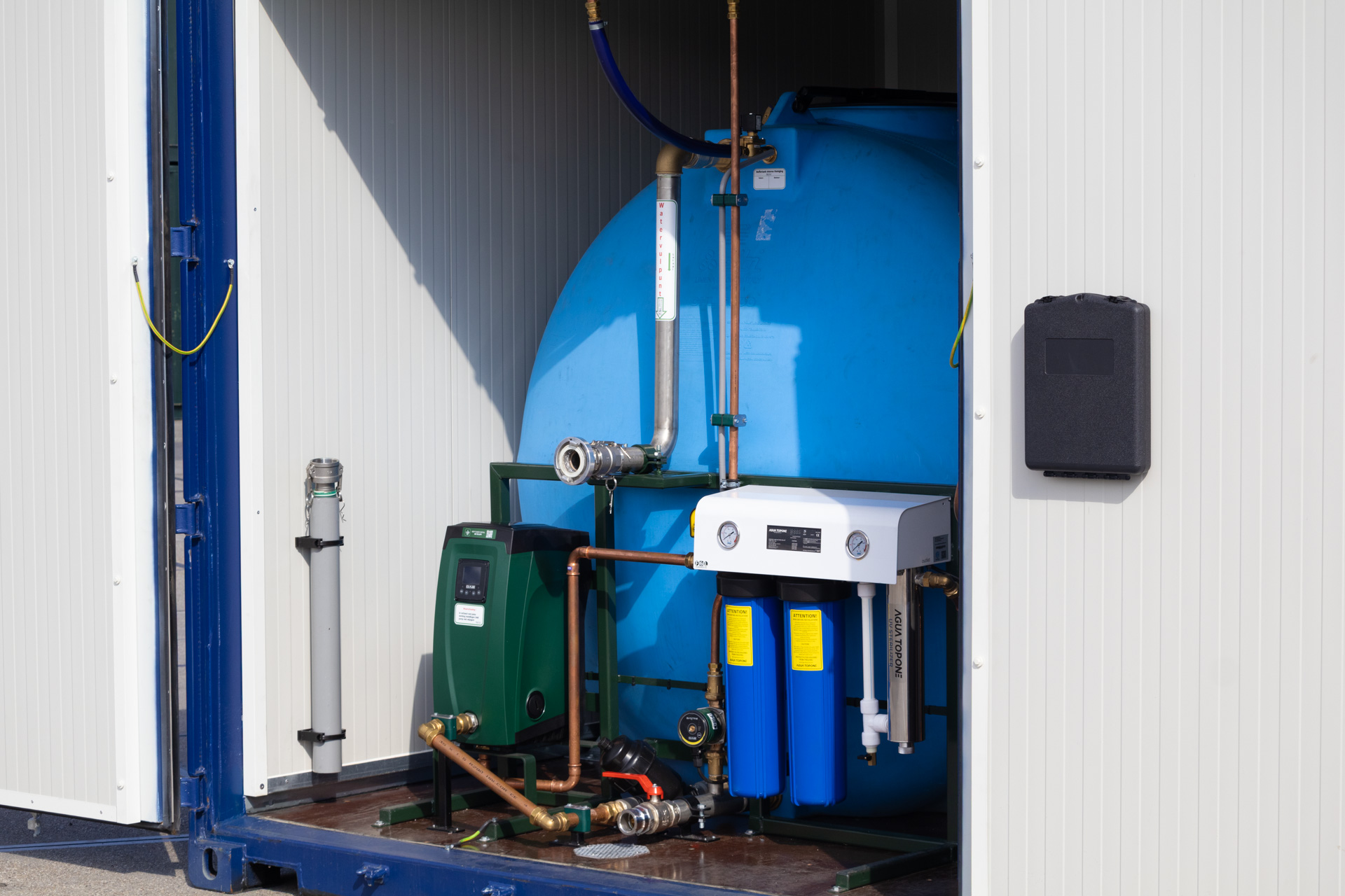 Dankzij de mogelijkheid om de WFC5000 uit te breiden met waterbuffers van 5.000 liter tot 26.000 liter of meer biedt, deze container een robuuste oplossing voor projecten van elke omvang. Bovendien is de container voorzien van meerdere tapwaterkranen, zodat drinkwater op verschillende punten tegelijk beschikbaar is: veilig, betrouwbaar en volgens de hoogste kwaliteitsnormen.